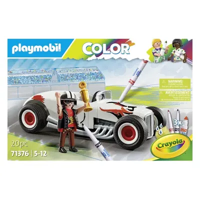 Sie sind zurück! Nach 45 Jahren kommt die PLAYMOBIL Color Kollektion groß zurück! In Zusammenarbeit mit CRAYOLA umfassen fünf neue Sets viele weiße Zubehörteile, die auf einzigartige Weise bemalt werden können. Diese können dann leicht gewaschen und erneut bemalt werden. Dieses Rennauto kann vollständig personalisiert werden! Ob Flammen, Linien oder Blitze, es kann so aussehen, wie du es dir vorstellst. Auch auf den Armen des Fahrers kannst du originelle Tattoos erstellen. En